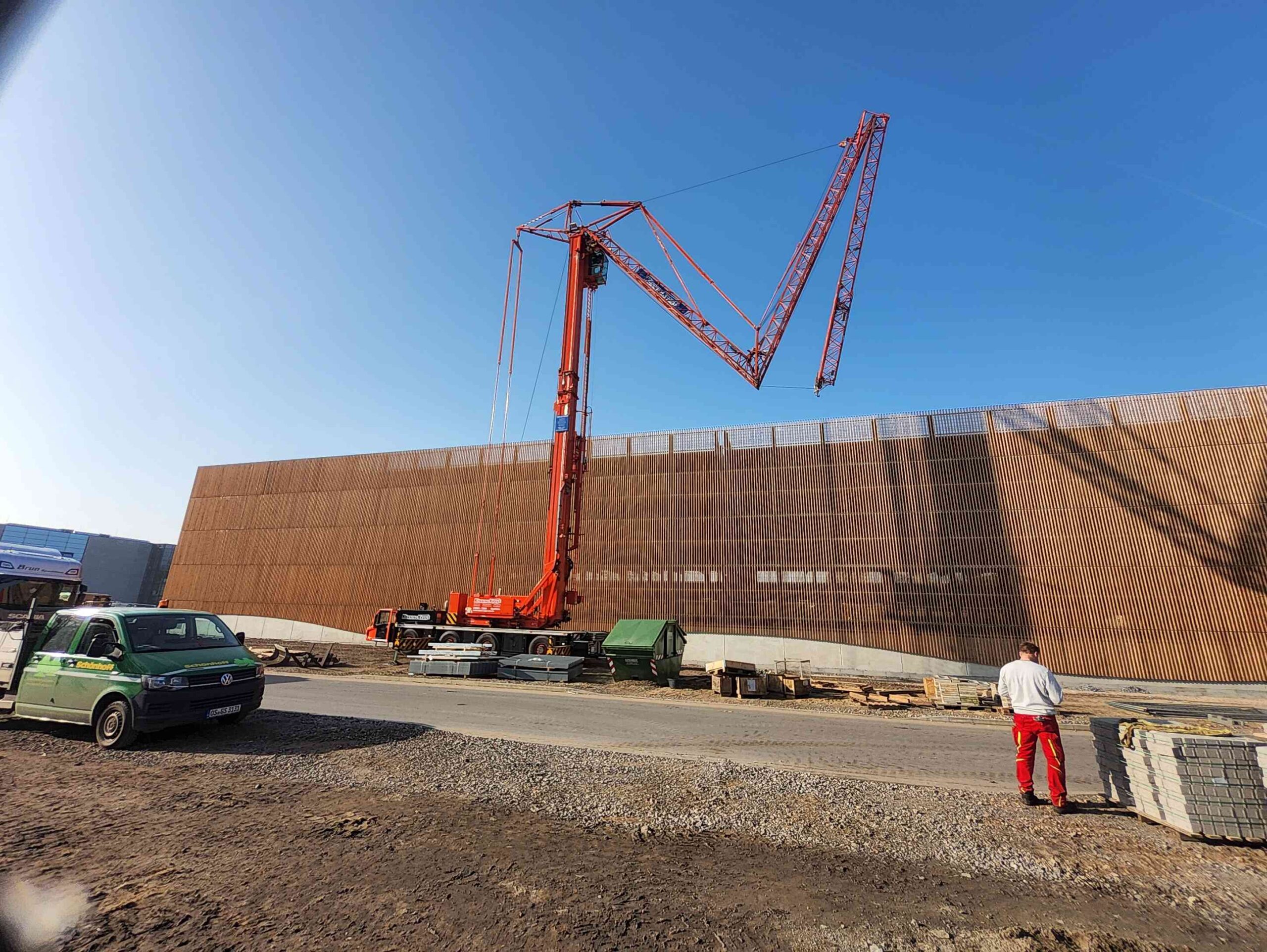 Material wurde angeliefert, der Kran aufgestellt und die technischen Komponenten wie Shelter und Wechselrichter vorbereitet.