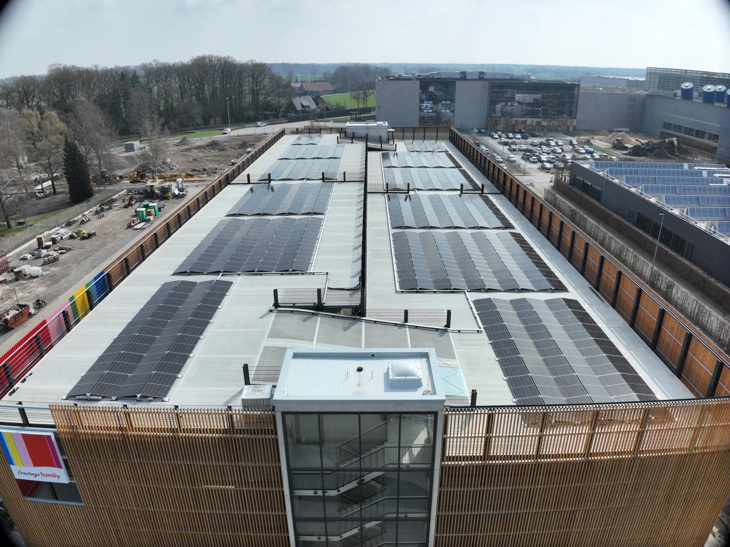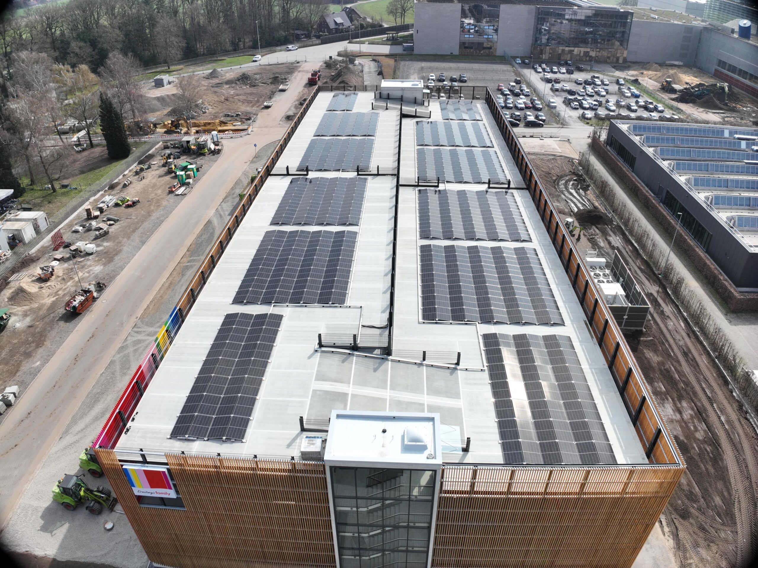 Am Standort von Ernsting’s family in Coesfeld-Lette entsteht aktuell ein weiteres starkes Zeichen für nachhaltige Energieversorgung: Auf dem Mitarbeiterparkhaus wird eine moderne Photovoltaikanlage installiert.