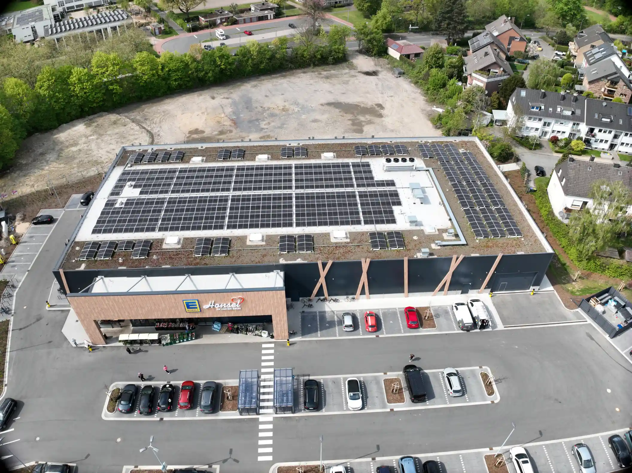 Mit dem Neubau des EDEKA Honsel in Dorsten-Hardt entsteht ein moderner Supermarkt, der auf nachhaltige Energie setzt – Herzstück ist die Photovoltaikanlage auf den Dächern. In unserem Bautagebuch begleiten wir die wichtigsten Meilensteine der Installation und zeigen, wie Schritt für Schritt eine leistungsstarke Solaranlage entsteht.