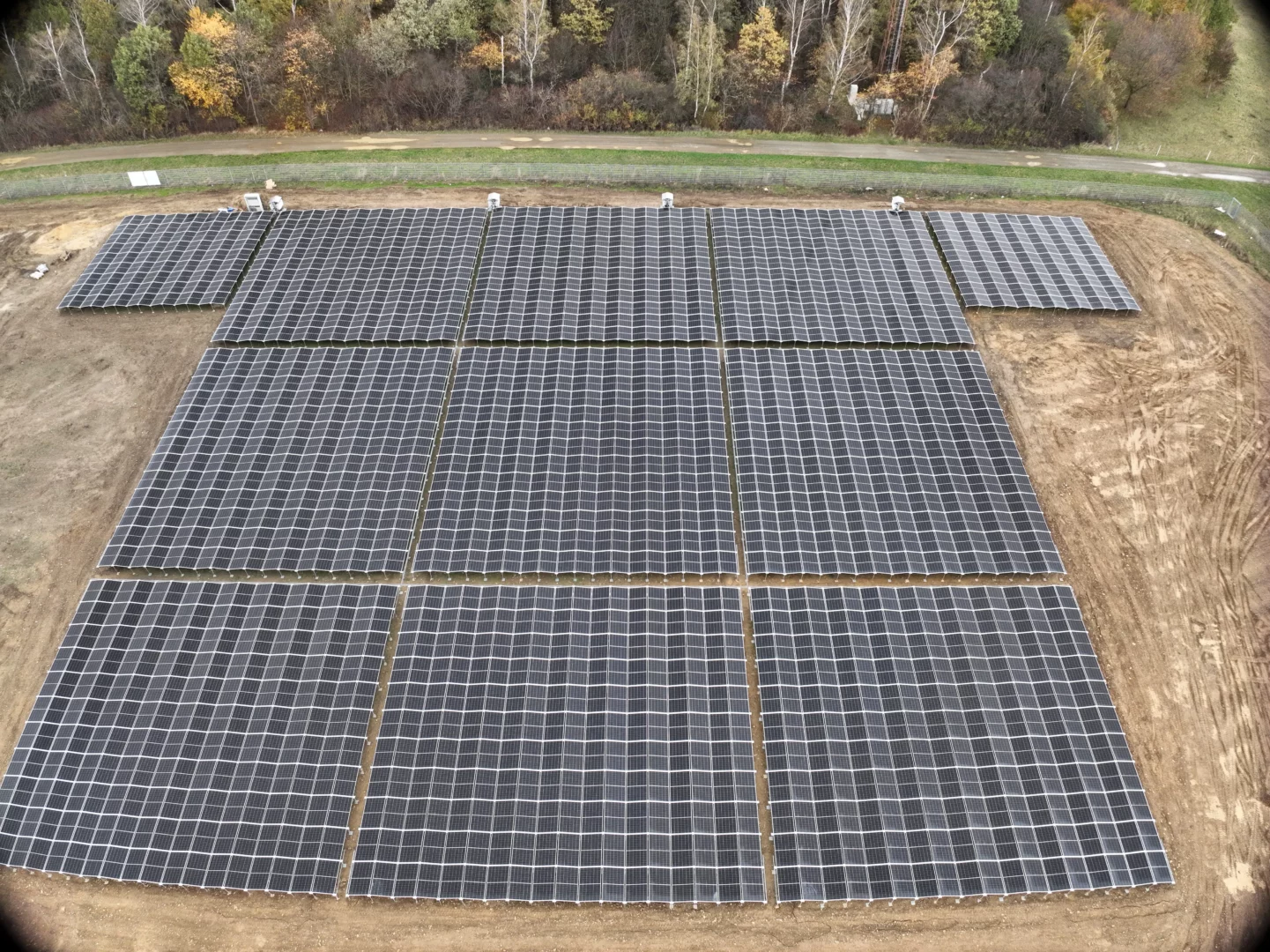 Ergänzend dazu wurde eine Freiflächenanlage mit 999,18 kWp realisiert. Über 2.196 Module erzeugen hier rund 849.303 kWh jährlich. Die Ost-West-Ausrichtung sorgt für eine gleichmäßige Energieproduktion über den Tag hinweg und ermöglicht eine optimale Anpassung an den Verbrauch.